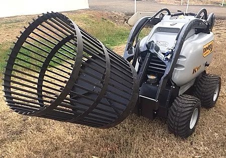 This attachment is ideal if you want to separate the coarse rocks and rubble from the better dirt, sand, etc? It can self load by simply driving it into the pile that needs separating, start the turning motion, and out comes clean fill. Drive the Dingo to the pile of rubble and tip it out.